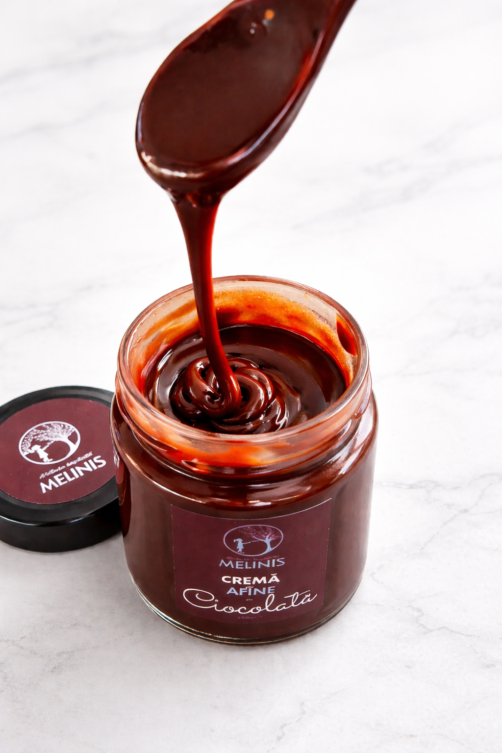 Melinis Afine cu Ciocolată Bean-to-Bar - Cremă tartinabilă din miere crudă, afine sălbatice ecologice și ciocolată 100% cacao