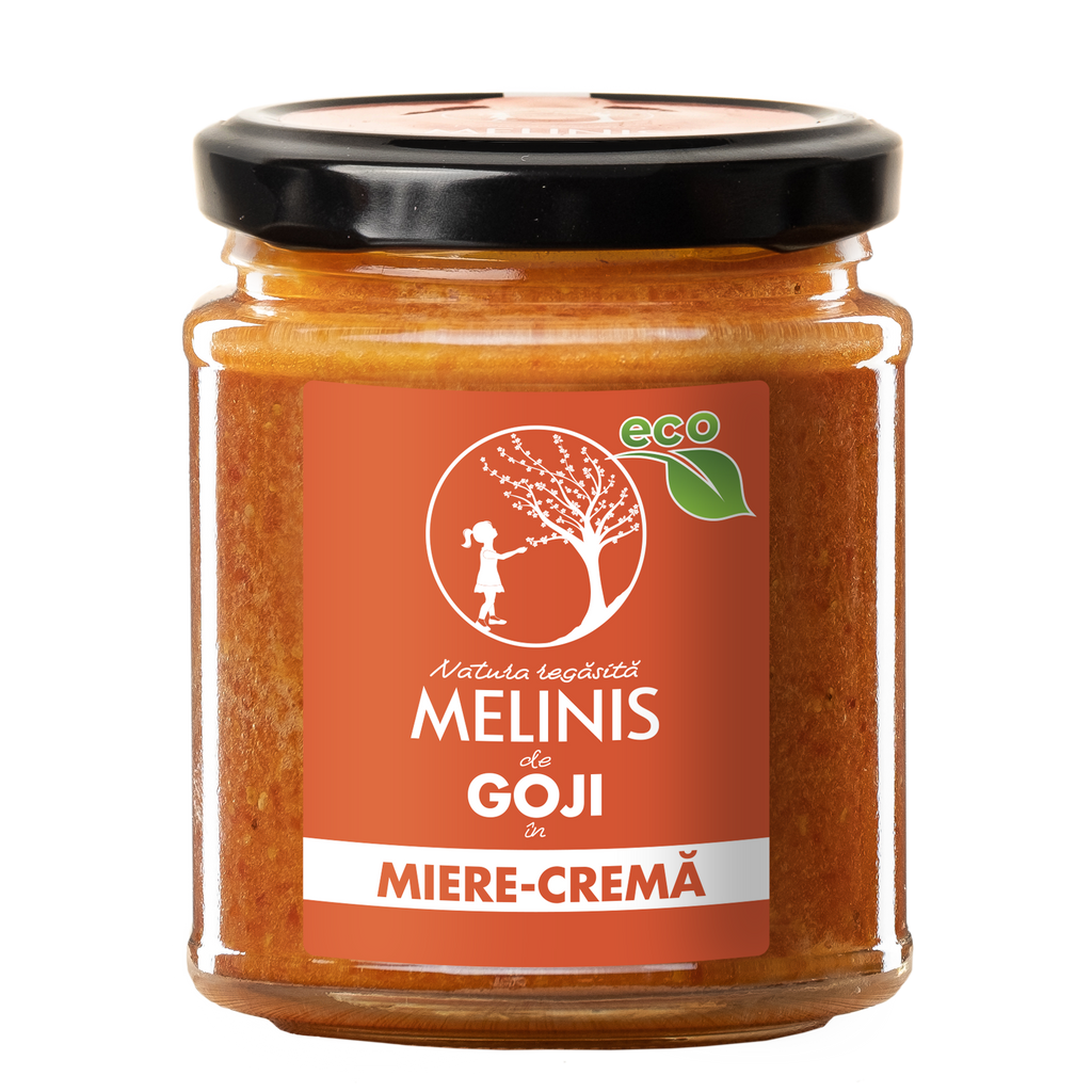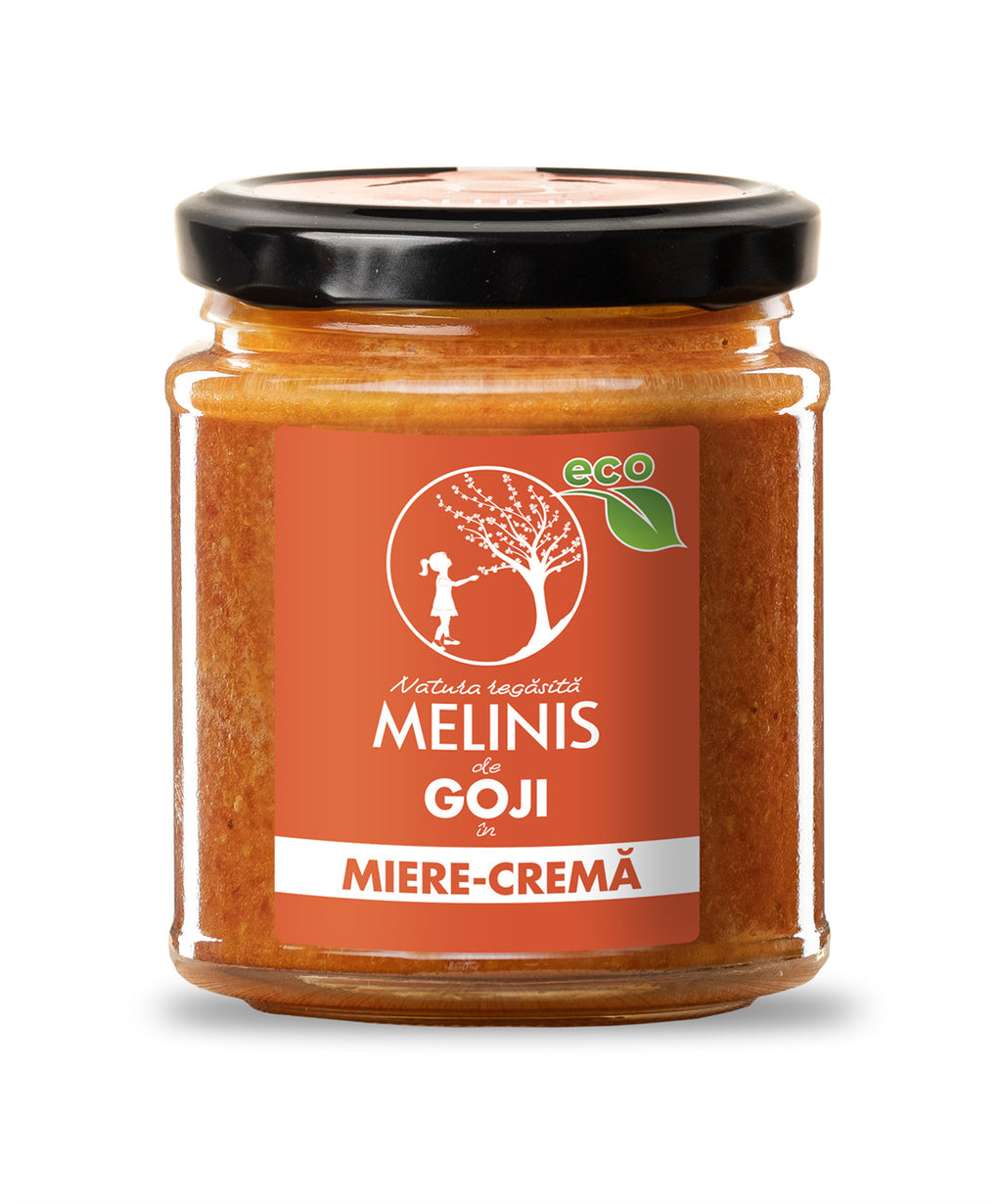 Melinis cremă de goji, cu miere polifloră sub formă de cremă, are o textură delicată și cremoasă și păstrează toți nutrienții pe care cele două ingrediente le conțin, separat, iar produsul astfel obținut este unul unic pe piață, care poate fi savurat atât ca atare, cât mai ales în combinație cu brânzeturi, toast-uri și cereale.