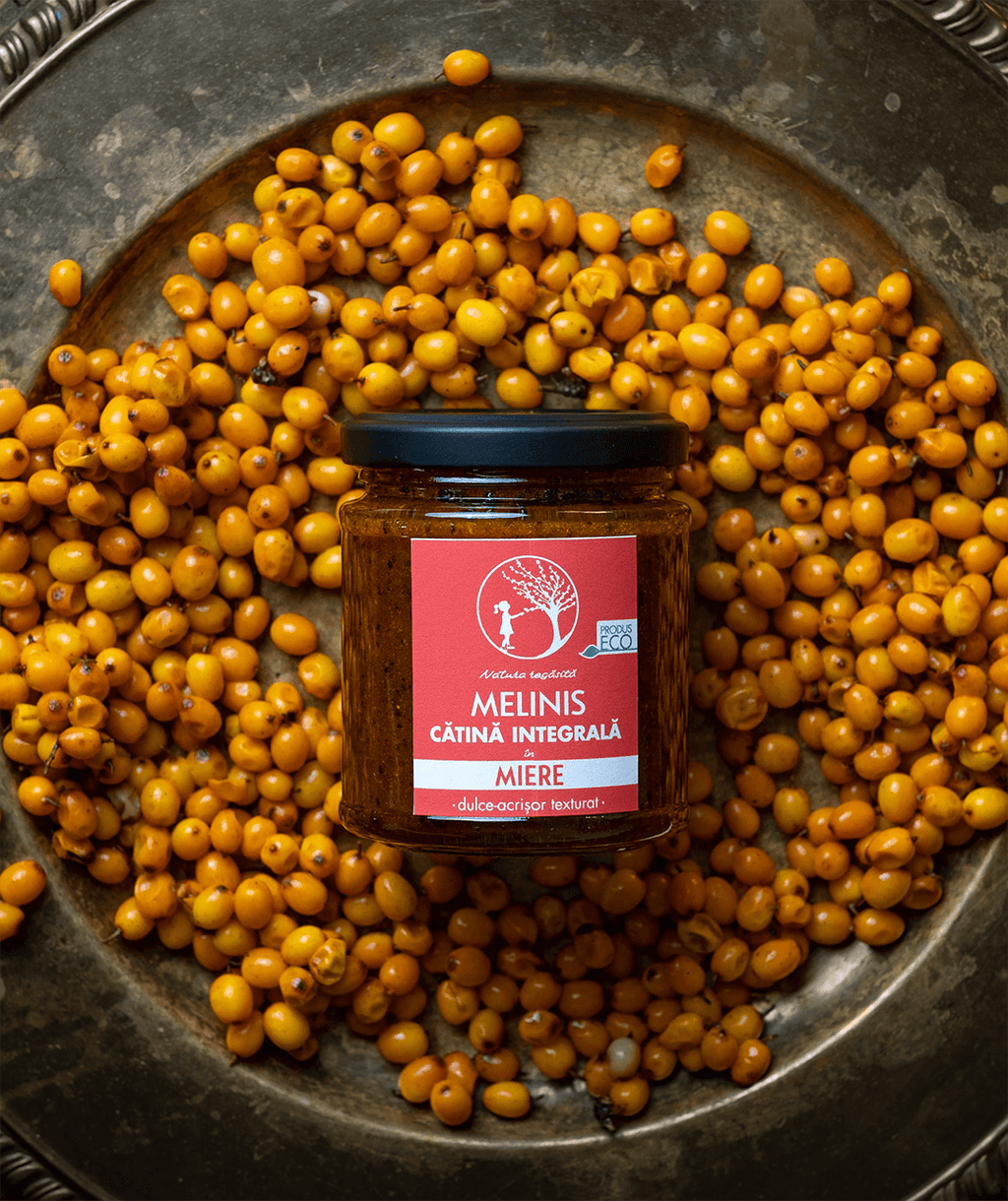 Fără zahăr, conservanți sau coloranți, doar cu ingrediente 100% naturale, Melinisul ECO de cătină integrală este un adevărat impuls de energie, ce îmbină perfect mierea de salcâm cu pasta de cătină crudă, obținând un produs cu multiple beneficii pentru creșterea imunității organismului.