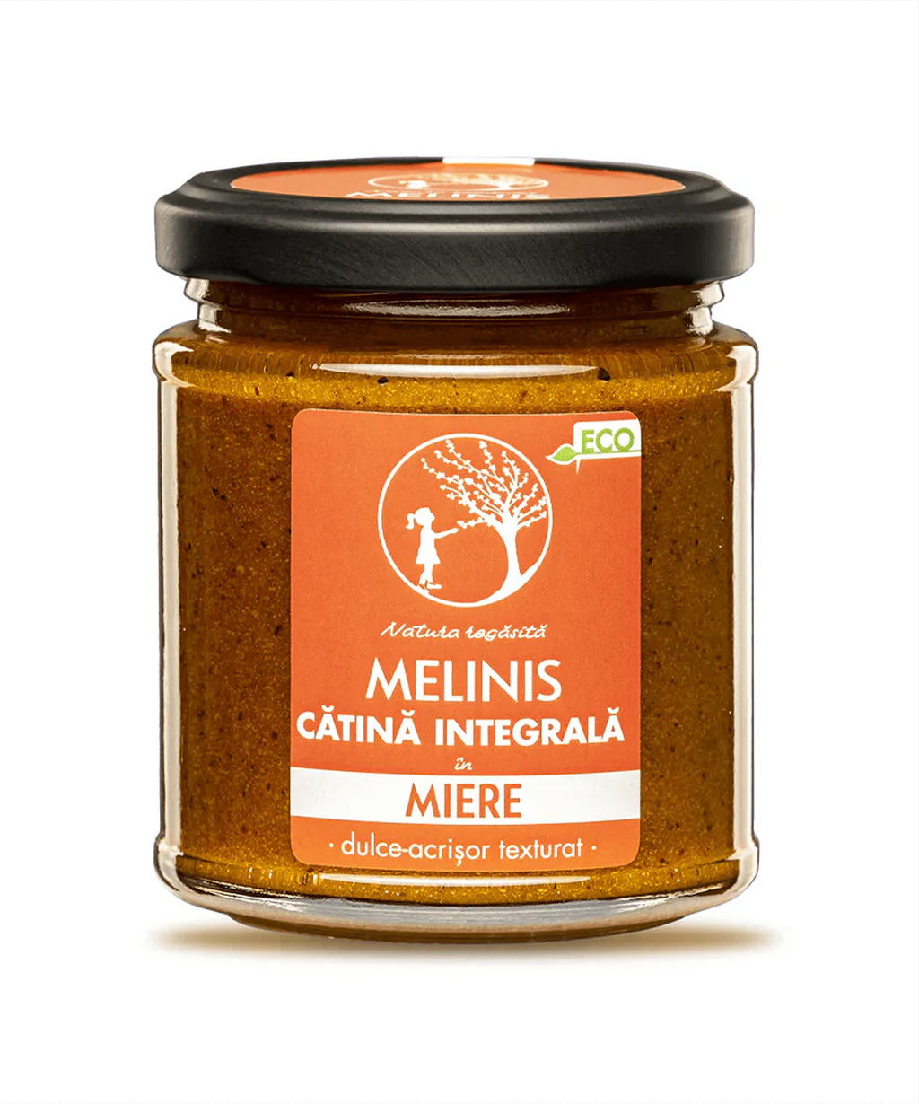 Fără zahăr, conservanți sau coloranți, doar cu ingrediente 100% naturale, Melinisul ECO de cătină integrală este un adevărat impuls de energie, ce îmbină perfect mierea de salcâm cu pasta de cătină crudă, obținând un produs cu multiple beneficii pentru creșterea imunității organismului.