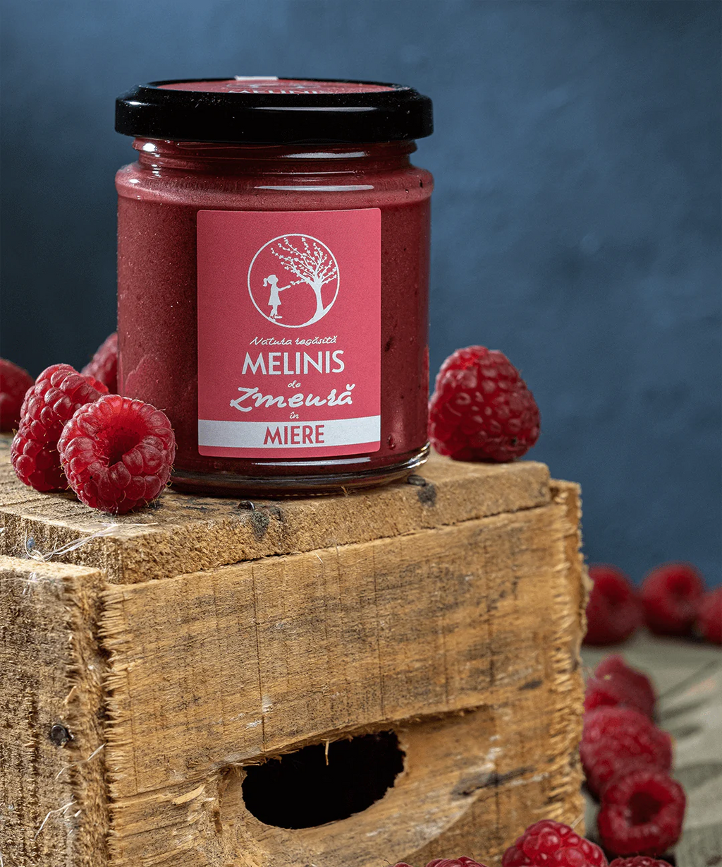 Îți răsfață papilele gustative prin aroma naturală a zmeurei proaspăt culese pusă în valoare de mierea fină de salcâm.