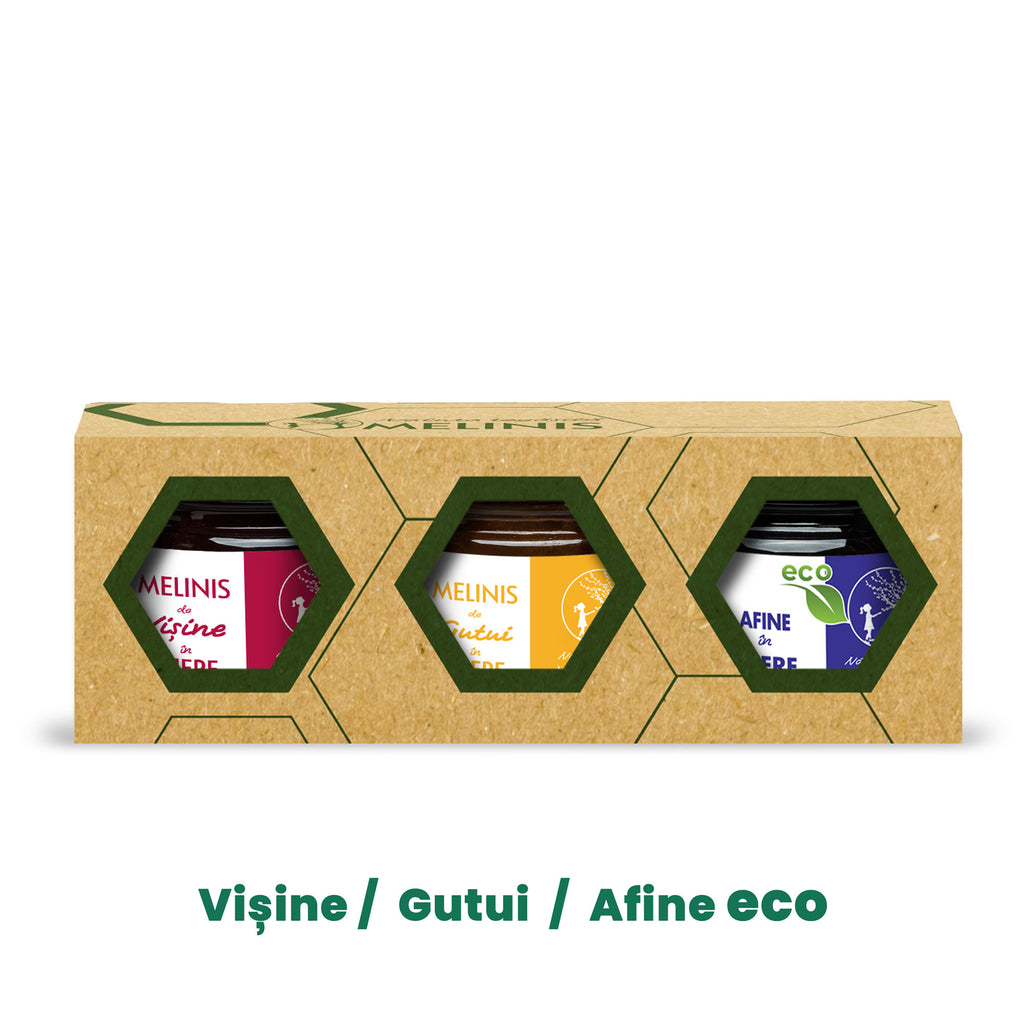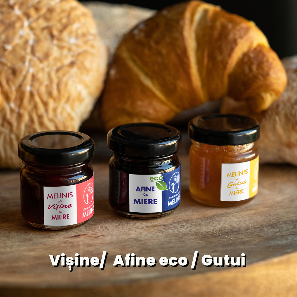 Pentru obținerea Melinisului parfumat de gutui folosim soiul de gutui Bereczki, cu un gust dulce, ușor acidulat, Melinisul de vișine proaspete, alături de mierea pură de salcâm te ajută să savurezi din plin nectarul naturii, în timp ce Melinisul de afine păstrează toate calitățile naturale ale ingredientelor, datorită utilizării unei tehnologii ce permite îmbinarea afinelor proaspete cu mierea naturală de salcâm - așa începe povestea setului ‘’Crocant și irezistibil’’, care te va cuceri de la prima degustare.